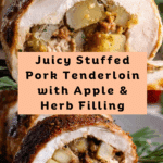 This Stuffed Pork Tenderloin recipe combines tender pork with a flavorful apple and bacon stuffing, enhanced by aromatic herbs and spices. Seared to perfection and roasted in the oven, it’s finished with a rich bourbon apple gravy that brings a delicious balance of savory, sweet, and smoky flavors – perfect for family dinners or special occasions.