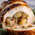 This Stuffed Pork Tenderloin recipe combines tender pork with a flavorful apple and bacon stuffing, enhanced by aromatic herbs and spices. Seared to perfection and roasted in the oven, it’s finished with a rich bourbon apple gravy that brings a delicious balance of savory, sweet, and smoky flavors – perfect for family dinners or special occasions.