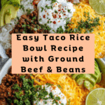 Keywords: taco rice bowl, ground beef taco bowl, turkey taco bowl, easy Mexican dinner, one pot taco bowl, quick weeknight meal, taco seasoning rice bowl