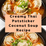 A flavorful and comforting Thai Potsticker Coconut Soup that combines the warmth of red curry and creamy coconut milk with tender potstickers, fresh vegetables, and bright lime juice. Perfect for a hearty meal with a touch of Asian-inspired spice and freshness.