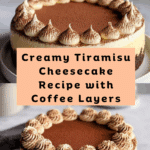 Tiramisu Cheesecake combines the rich, creamy texture of cheesecake with the classic flavors of tiramisu. This indulgent dessert layers espresso-soaked ladyfingers with mascarpone and cream cheese filling for a delightful treat that’s perfect for any occasion.