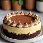 This decadent Tiramisu Cheesecake combines the rich, creamy texture of classic cheesecake with the beloved flavors of traditional tiramisu. Featuring layers of coffee-soaked ladyfingers, a smooth mascarpone and cream cheese filling, and a chocolate cookie crust, this dessert is finished with whipped cream and a dusting of cocoa powder for the perfect indulgent treat.
