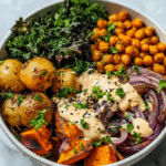 This Veggie-Chickpea Bowl is a vibrant, wholesome meal that’s easy to prepare and packed with flavor. Roasted vegetables and chickpeas are complemented by a creamy tahini dressing, making it a perfect choice for a nutritious lunch or dinner.